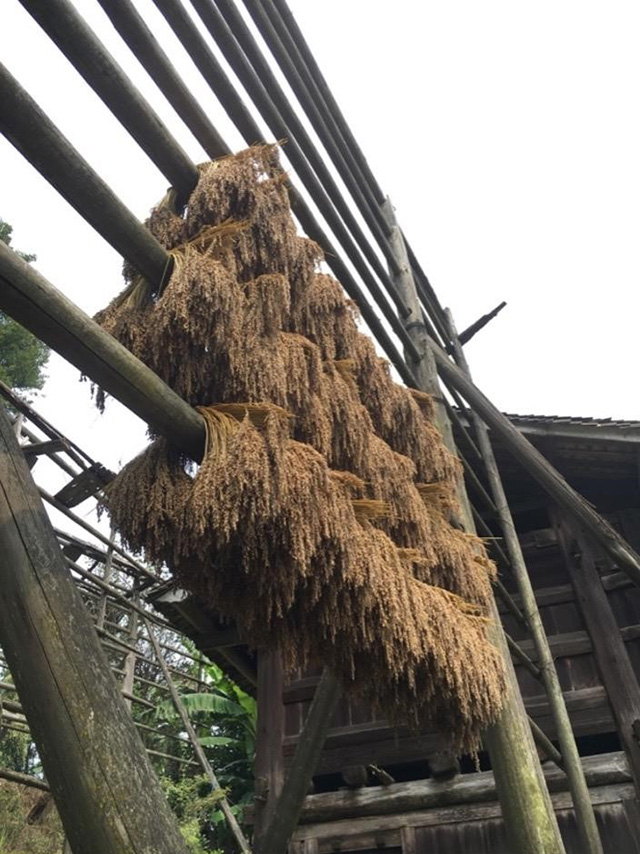 He holds great ritual significance and has important symbolic meanings in many ethnic groups in Guizhou. It is used in various rites of passage such as birth, wedding, and funerals, as well as in many other ritual occasions, for example, fortune telling, expelling ghost and communicating with ancestors. Therefore, the way to harvest, dry, and store he within the ears is not only because of the difficulties of threshing, but also because farmers need to make sure the he seeds do not mix up with other kinds of grains to keep its “purity”. In some areas, only he can be stored in granaries in order to prevent “contamination” from other grains.