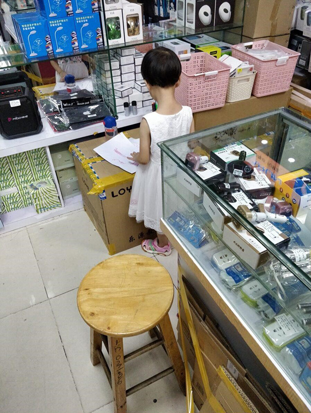 Fig. 12  Children in the Huaqiangbei electronics markets. Children are a common sight within the markets as parents work while taking care of their children. Strollers and toys are often visible in the market hallways. Photo by author.