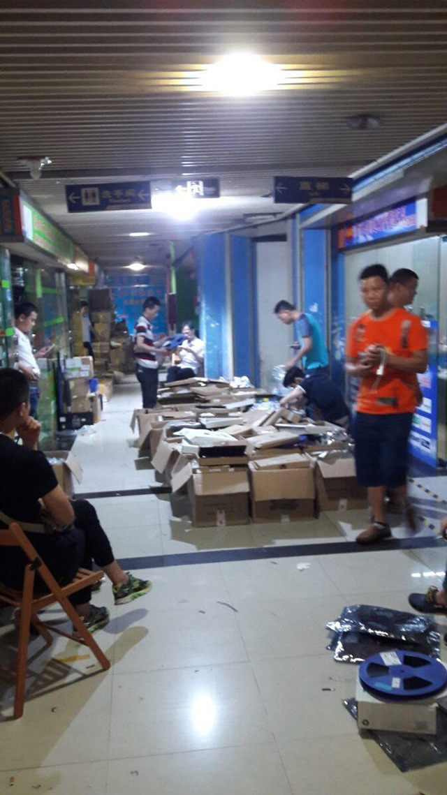 Fig. 14  One of the most ubiquitous activities in the markets is the packing and shipping of goods. Here, workers are shown packing electronics into boxes to prepare for shipping. Photo by author.