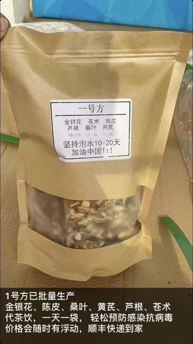 The formulae and patented drugs listed in the Scheme were meant to be used in clinical treatment under the guidance of specialists, as opposed to being self-administered as preventives by ordinary people. The NHC and NTCM never intended to publicly disseminate them in the first place. However, in the first two months of the COIVD-19 outbreak in China, local governments and hospitals in, for example, Guangdong and Zhejiang provinces disclosed preventive formulae to the public, and local TCM pharmacies and herbal dealers were keen to identify the public’s craving for effective TCM-based COVID-19 remedies as a business opportunity. They packaged herbs and bottled herbal decoctions that were produced based on different recommended formulae, including those obtained from the Scheme, and sold them through social media and online shopping platforms.